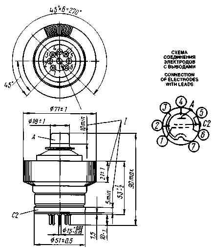 - cathode; 3, 7 - heater; 5, C2 - grid 2; A - anode;