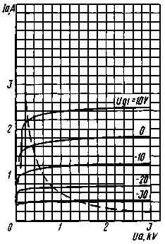 | Mutual conductance (at anode voltage 1,000 V, grid 2 voltage 300 V, grid 1 voltage change ±2.5 V, anode current 600 mA), mA/V | 26-38 |